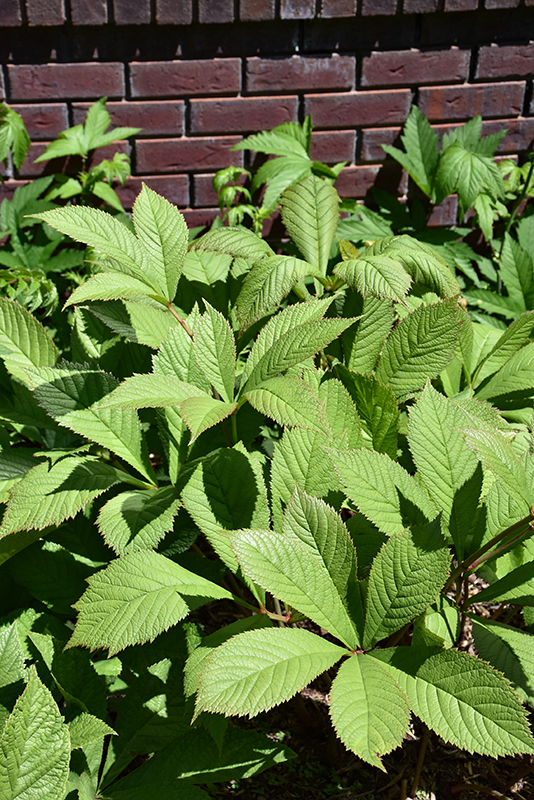 Chestnut Rodgersia will grow to be about 3 feet tall at maturity extending to 5 feet tall with the flowers, with a spread of 5 feet. When grown in masses or used as a bedding plant, individual plants should be spaced approximately 4 feet apart. It grows at a slow rate, and under ideal conditions can be expected to live for approximately 10 years. As an herbaceous perennial, this plant will usually die back to the crown each winter, and will regrow from the base each spring. Be careful not to disturb the crown in late winter when it may not be readily seen!