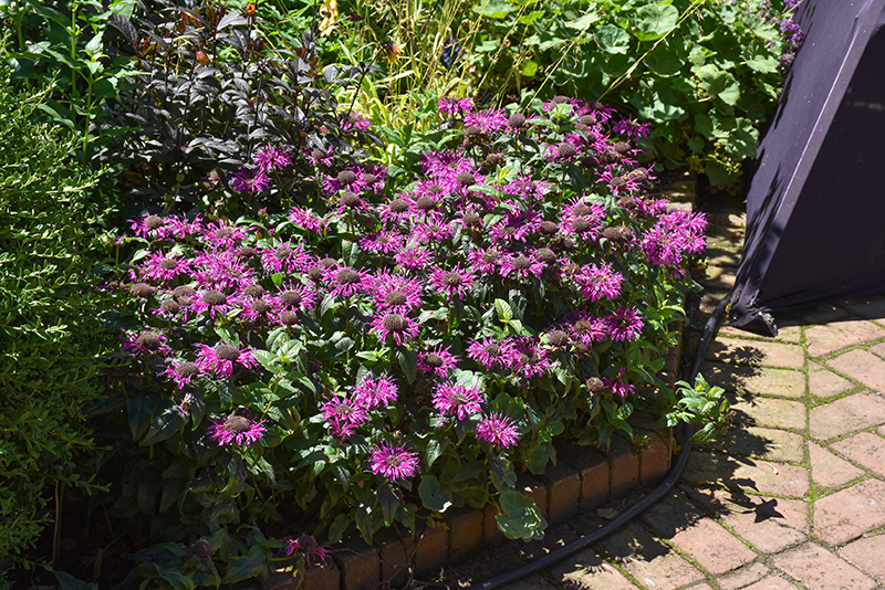 A petite form of bee balm that produces multitudes of striking fuchsia-purple flowers in mid summer; this very compact form is mildew resistant as well; great for massing in the front of borders