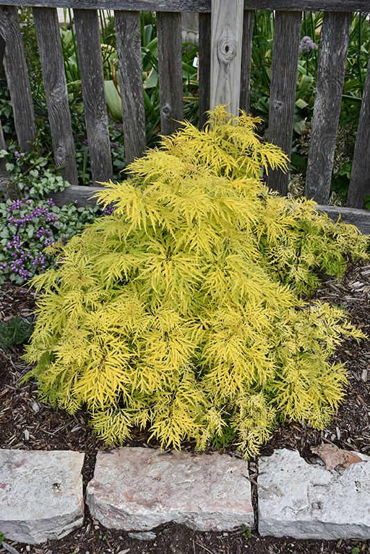 A refined yet durable garden shrub featuring beautiful, threadlike golden foliage all season; creamy white flowers in spring followed by bright red berries; compact and upright habit, a reliable color accent for the garden