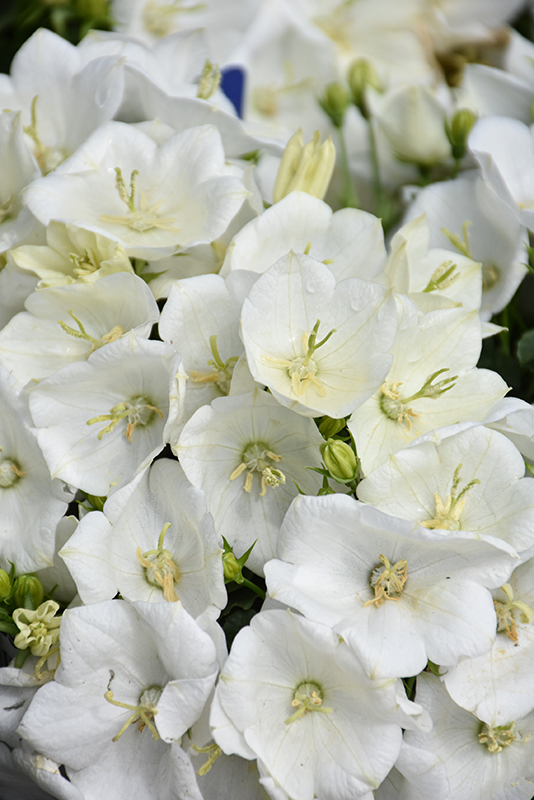 Rapido White Bellflower will grow to be about 8 inches tall at maturity, with a spread of 14 inches. When grown in masses or used as a bedding plant, individual plants should be spaced approximately 12 inches apart. Its foliage tends to remain low and dense right to the ground. It grows at a medium rate, and under ideal conditions can be expected to live for approximately 5 years. As an herbaceous perennial, this plant will usually die back to the crown each winter, and will regrow from the base each spring. Be careful not to disturb the crown in late winter when it may not be readily seen!