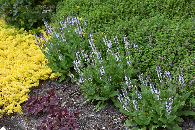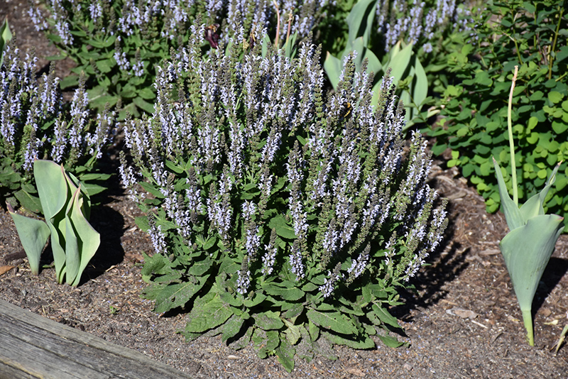 Bumblesky Meadow Sage will grow to be about 14 inches tall at maturity, with a spread of 20 inches. When grown in masses or used as a bedding plant, individual plants should be spaced approximately 18 inches apart. It grows at a medium rate, and under ideal conditions can be expected to live for approximately 5 years. As an herbaceous perennial, this plant will usually die back to the crown each winter, and will regrow from the base each spring. Be careful not to disturb the crown in late winter when it may not be readily seen!