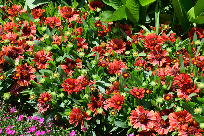 Spintop Yellow Touch Blanket Flower has masses of beautiful semi-double scarlet daisy flowers with dark red eyes and yellow tips at the ends of the stems from early summer to early fall, which are most effective when planted in groupings. The flowers are excellent for cutting. Its tomentose narrow leaves remain grayish green in colour throughout the season.