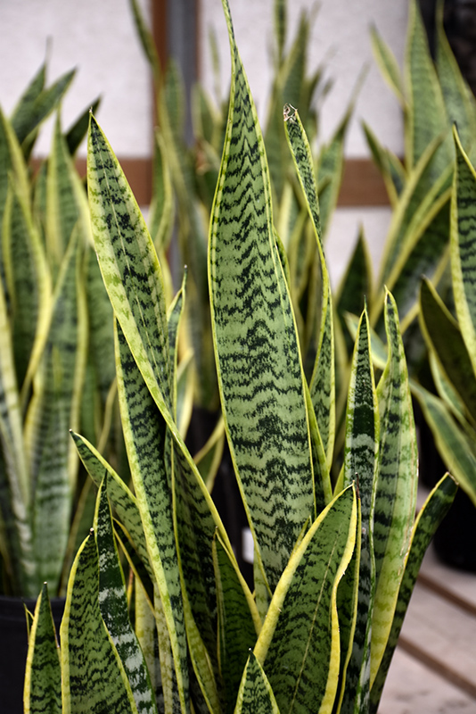 This popular, easy care houseplant will form dense stands of vertical, sword-like leaves arranged in a rosette; this variety produces silvery-green leaves, mottled and striped with dark green and edged in gold; beautiful indoor accent
