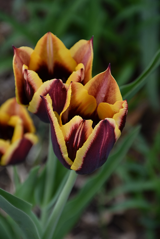 Gavota Tulip has masses of beautiful burgundy cup-shaped flowers with brick red overtones and yellow edges at the ends of the stems in mid spring, which are most effective when planted in groupings. The flowers are excellent for cutting. Its sword-like leaves remain green in colour throughout the season.