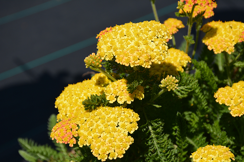 Large umbels of lemon yellow blooms emerge from orange buds, then slowly fade to shades of butter cream, with all shades showing at once; excellent for xeriscaping and hot, sunny, dry locations; perfect for beds, border fronts, and containers