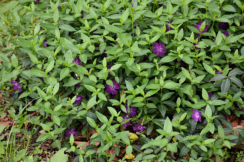 Wine Periwinkle will grow to be only 6 inches tall at maturity, with a spread of 24 inches. Its foliage tends to remain low and dense right to the ground. It grows at a fast rate, and under ideal conditions can be expected to live for approximately 10 years. As an evegreen perennial, this plant will typically keep its form and foliage year-round.