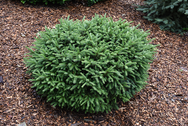Dwarf Norway Spruce will grow to be about 3 feet tall at maturity, with a spread of 6 feet. It tends to fill out right to the ground and therefore doesn't necessarily require facer plants in front. It grows at a slow rate, and under ideal conditions can be expected to live for 50 years or more.